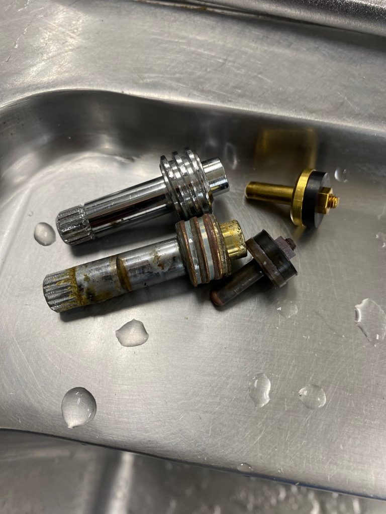 厨房 水栓止水不良 2025年11月27日 最終更新日時 : 2026年1月7日 makotogijyutsu スピンドル・コマ取替 分解しスピンドルとコマを取り外し。 新旧のスピンドルとコマスピンドルはネジ山がすり減り、コマはパッキンが硬化していたので両方取替。 FacebookXBlueskyHatenaCopy